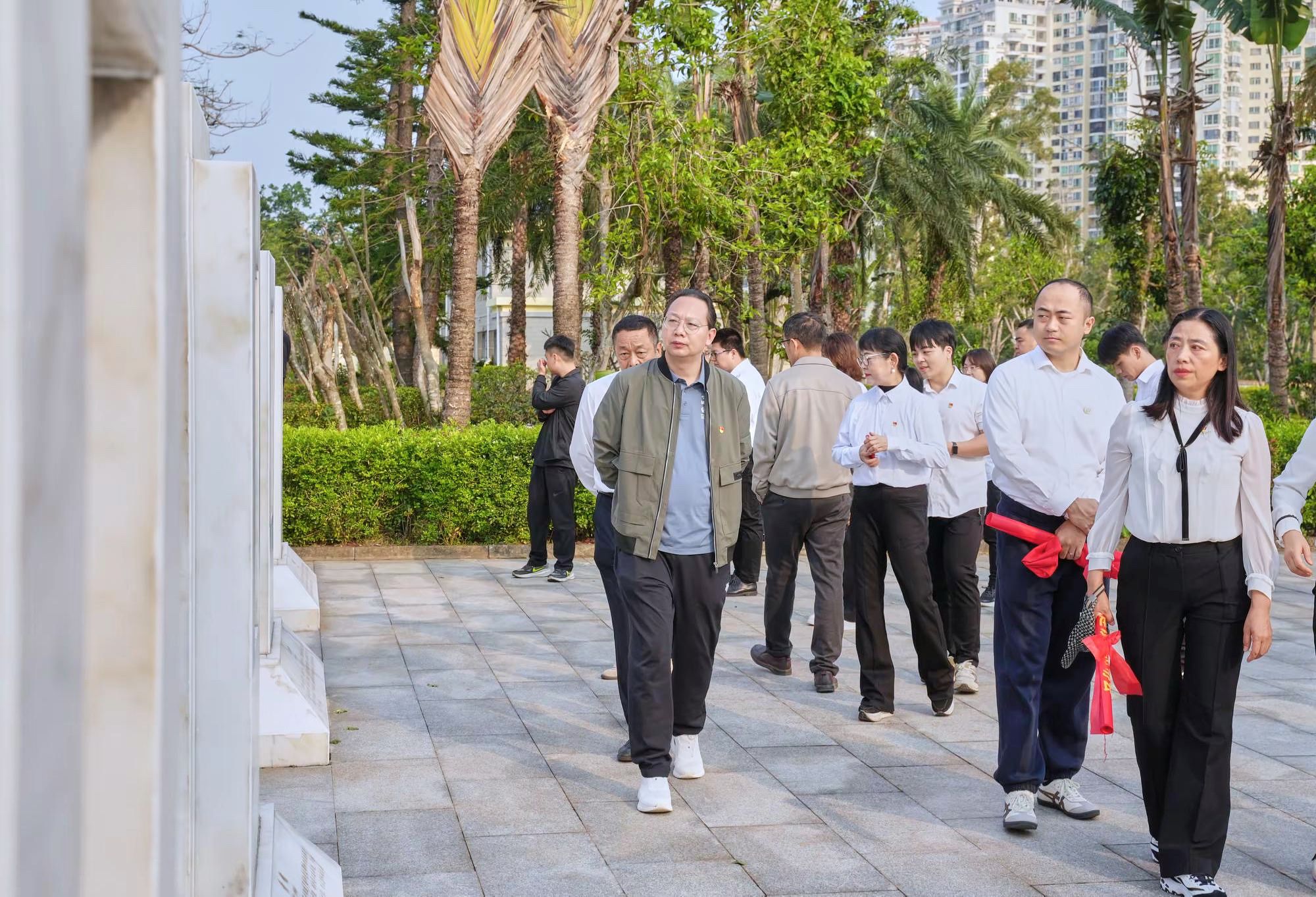 在莊嚴的宣誓環節,全體黨員高舉右拳,集體宣誓:“銘記瓊崖烽火,繼承先烈遺志;守護碧海藍天,建設自貿海南;請黨放心,強國有我!”錚錚誓言回蕩在陵園上空,激勵著每一位黨員不忘初心、牢記使命的堅定決心。活動最后,全體人員有序向烈士紀念碑敬獻鮮花,并繞行參觀了解放海南島戰役歷史展陳,進一步了解革命先烈的英勇事跡和海南解放的光輝歷程。