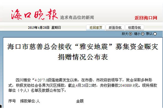 “雅安地震”募集資金賑災(zāi)捐贈