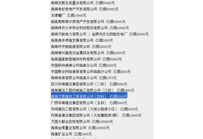 2013年臨高縣“愛心助學(xué)·陽光行動”企業(yè)捐款